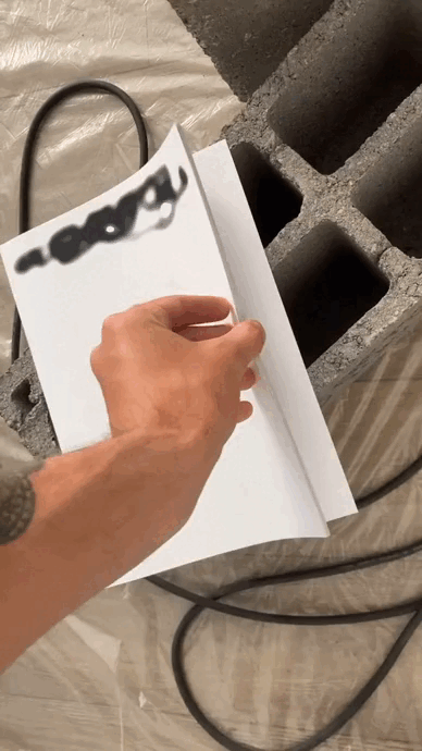 "SUR LE MURET" est pour moi une façon de parler du graffiti qu’on ne voit pas, et de se réapproprier le processus de création de la peinture par une démarche quasi abstraite, plastique.